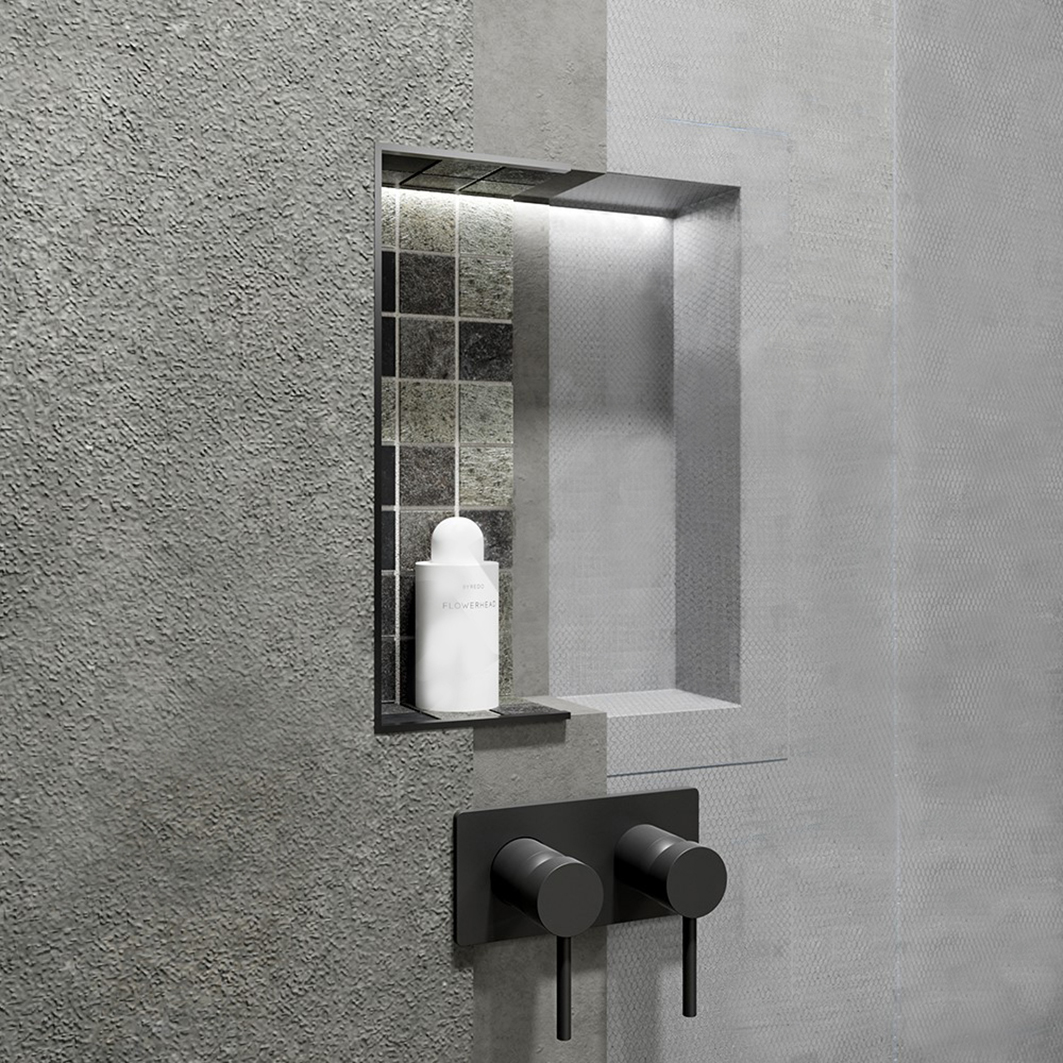 They integrate with Marmox board systems and waterproofing accessories to deliver recessed shelving and storage areas in showers, wet rooms, laundries, and bathroom walls, finished with tiles of your choice for a clean, custom look.